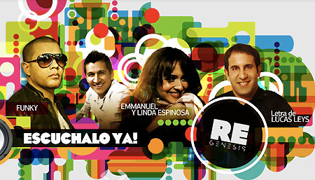 Re-Génesis es la canción que será presentada como lema de la Convención Internacional Liderazgo Juvenil 2011 en la ciudad de Orlando en el mes de Noviembre. Como ya sucedió con los temas “Yo Soy la revolución” y “Momentum” de Rojo hace unos años, Lucas Leys y Emmanuel Espinosa se unieron una vez más para realizar esta producción que motivará a miles de líderes de jóvenes en el mundo de habla hispana. La doble novedad es que en esta ocasión se suma a la partida Funky, uno de los máximos exponentes del reggaeton cristiano.